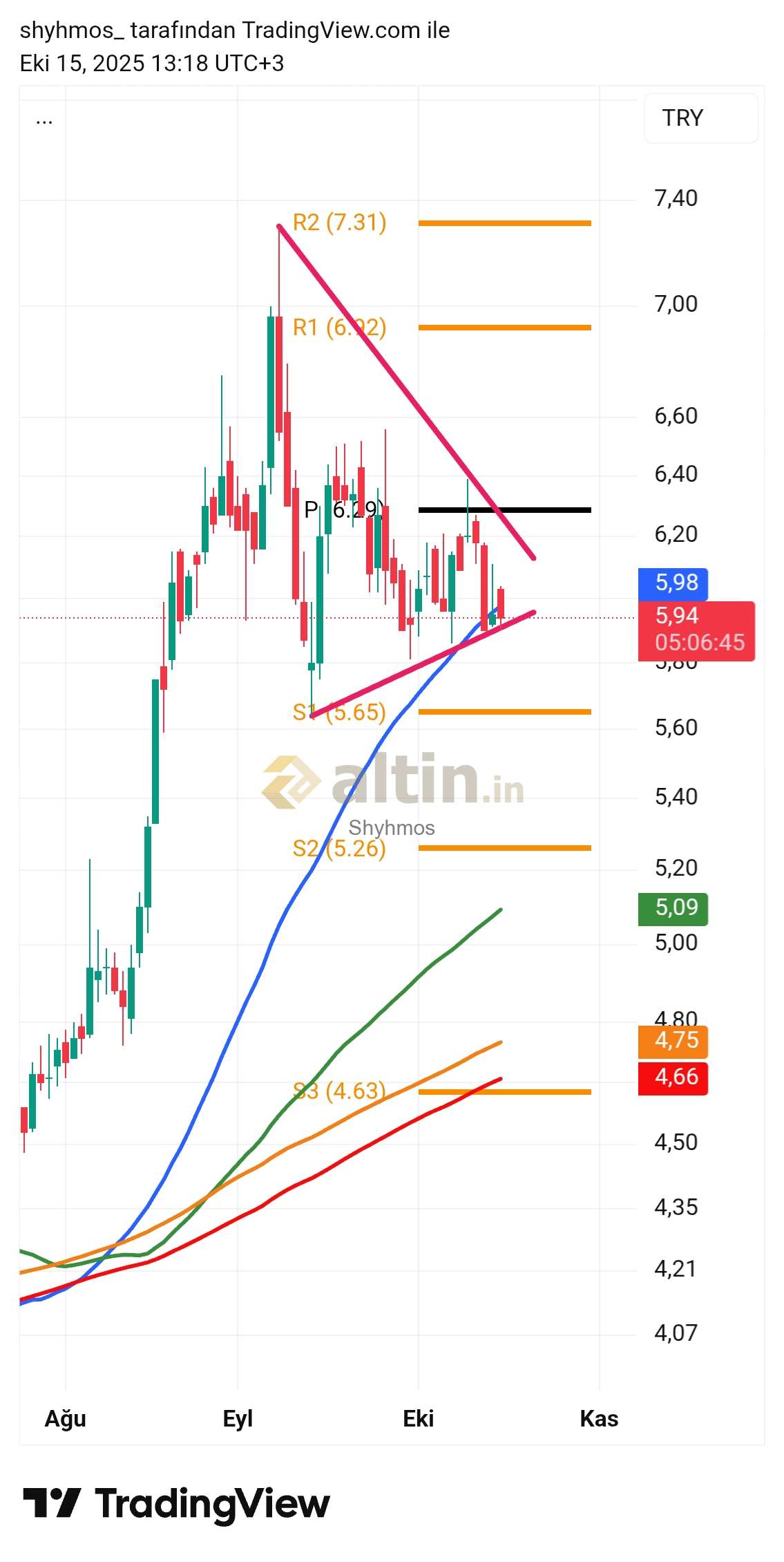 Olumlanabikecek durum...Üçgen alt desteğinde öncelikle kırılım ne yönde olacak ona bakmak lazım. Hacimli bir geri dönüş umutlandırır. İlk baraj gün. Piv. 6.29
