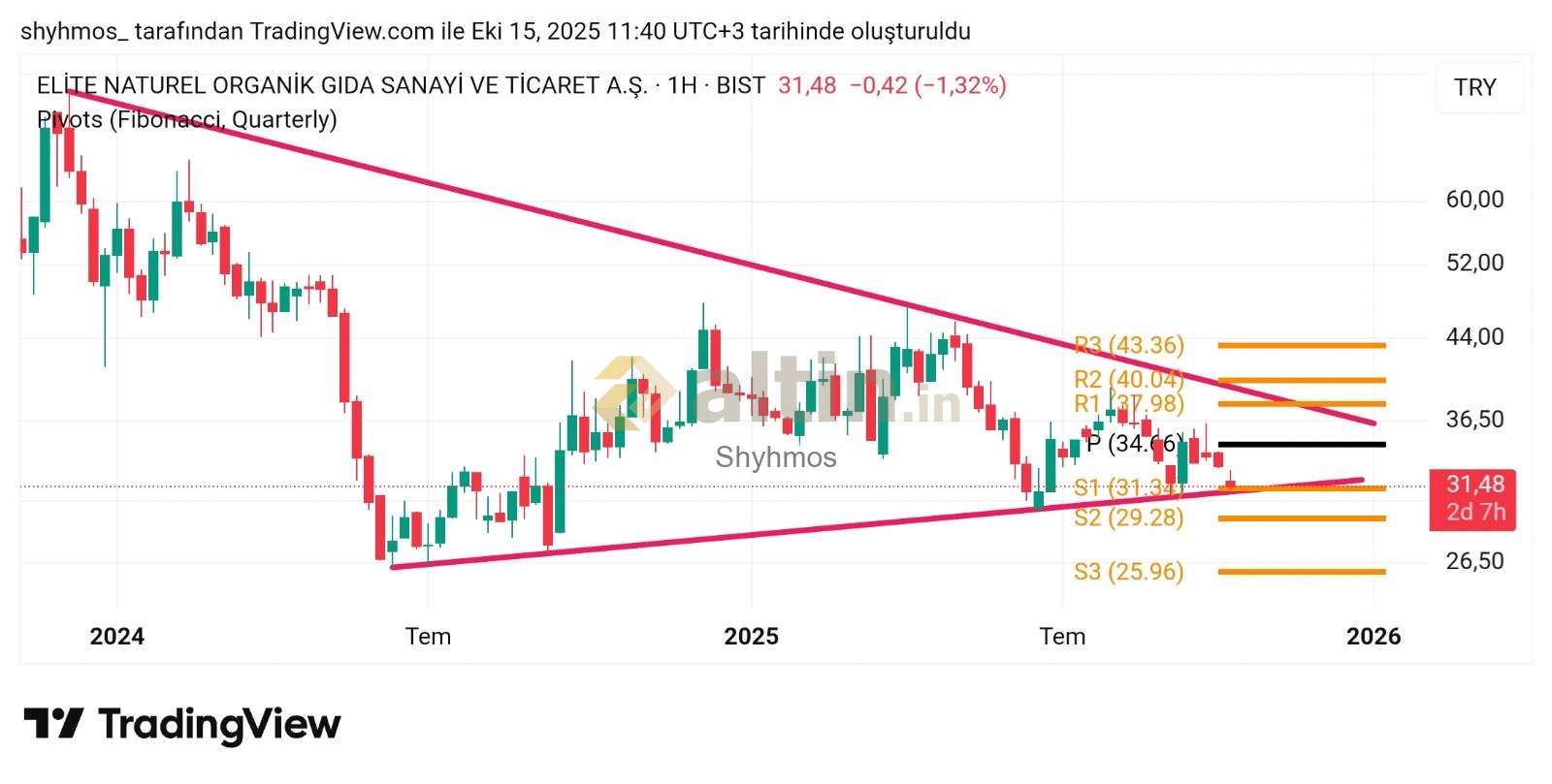 İlk takip edilecek yer üçgenin alt çizgisi (destek) Hacim artışı ile beraber 30 altı kapanış (negatif) nerede dyracağını bilemeyiz